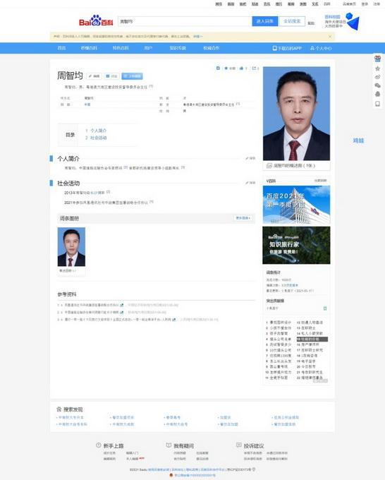 澎湃新闻记者注意到,通过百度等搜索引擎简单搜索“周智均”就能找到不少关于其的资料,甚至还有“周智均”的专属百度百科词条,并配上了标准照。